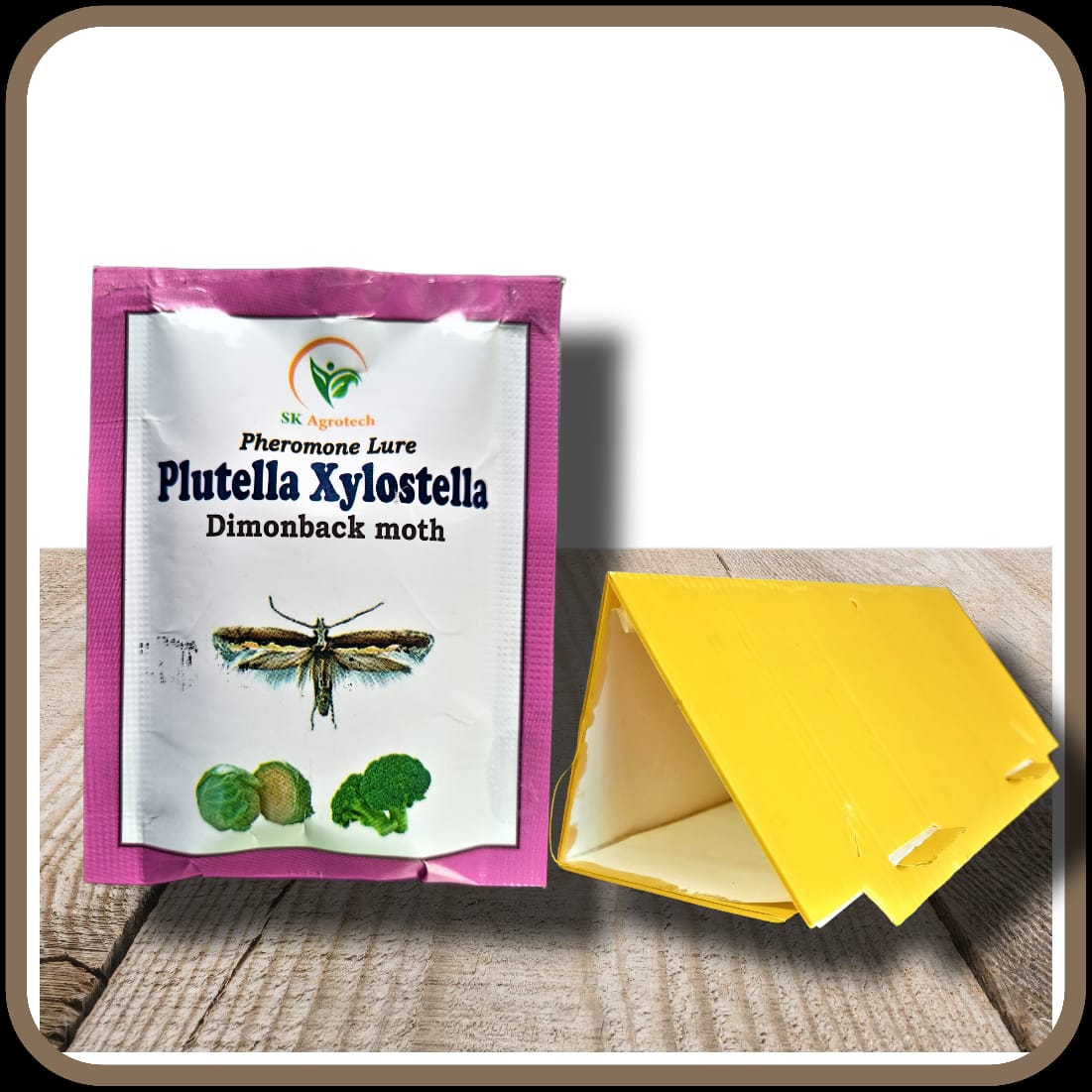 Product Specifications: Brand: SK Agrotech Type: Pheromone Lure Target Pest: Diamondback Moth (Plutella xylostella) Material: High-quality, long-lasting attractant Usage Duration: Effective for [insert duration if available] (Typically lasts for 4-6 weeks) Key Features: Highly Effective: Emits a specific pheromone that attracts Diamondback Moths, facilitating their capture and monitoring. Durable: Designed to maintain effectiveness over time, even in various environmental conditions. Eco-Friendly: Non-toxic and safe for use in agricultural settings, promoting sustainable pest management. Easy to Use: Simple to attach to traps or other monitoring devices, with straightforward application instructions. Benefits: Targeted Pest Control: Specifically designed to attract and capture Diamondback Moths, reducing their population and damage to crops. Reduced Chemical Usage: Helps minimize the need for chemical pesticides by providing a more targeted pest control method. Improved Crop Health: Enhances the health and yield of crops by effectively managing pest infestations. Cost-Effective: Provides a long-lasting solution with minimal ongoing costs, improving overall pest management efficiency. Recommended Crops: Cabbage Cauliflower Broccoli